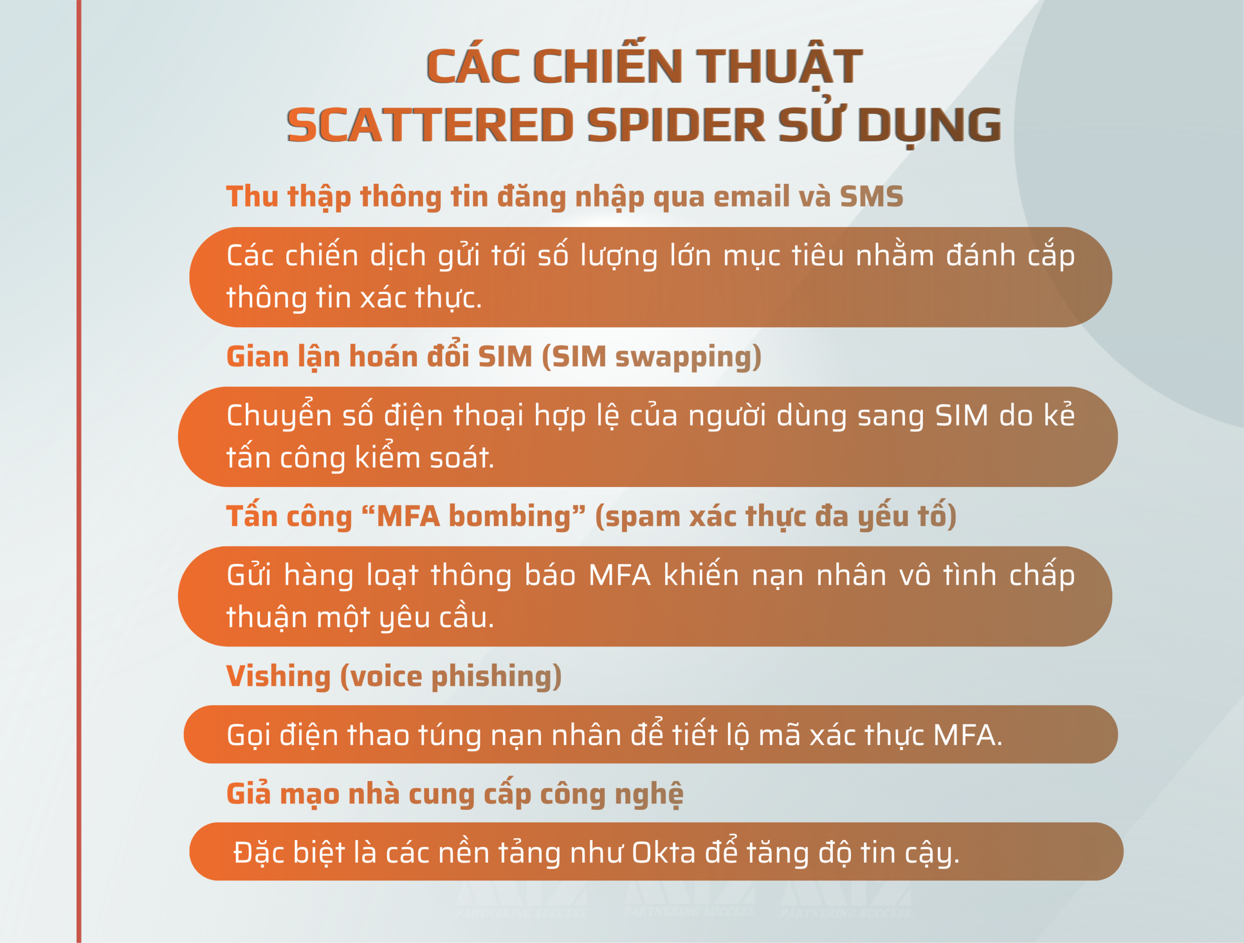 Các chiến dịch tấn công ngày càng tinh vi. Các nhóm tấn công như Scattered Spider cho thấy rõ cách tin tặc khai thác yếu tố con người. Những cuộc tấn công thường bắt đầu bằng email phishing, sau đó leo thang thành các cuộc gọi giả mạo (vishing) nhằm tạo áp lực và yêu cầu cung cấp thông tin truy cập.